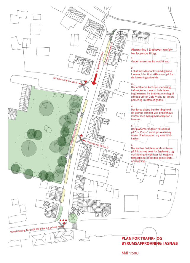På baggrund af en grundig inddragelsesproces omkring trafik- og byrumsafprøvningerne i Enghaven kan byfornyelsen nu præsentere den kommende plan for afprøvningen.